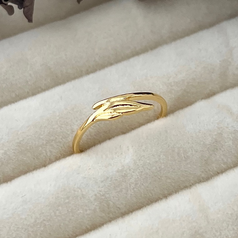 Anel aro 14,5 folha em banho de ouro 18k