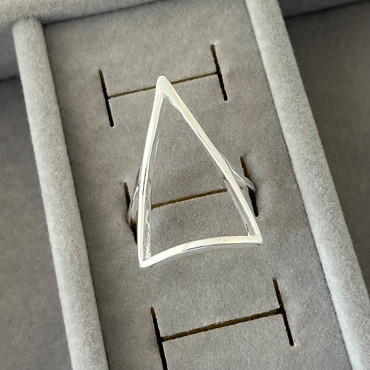 Moderno e minimalista, o anel triângulo vazado traz um design geométrico elegante e cheio de personalidade. O formato triangular vazado cria um efeito leve e contemporâneo, valorizando as mãos com sofisticação e estilo.