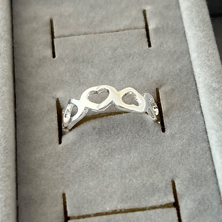 Anel aro 26 corações vazados em banho de prata silver