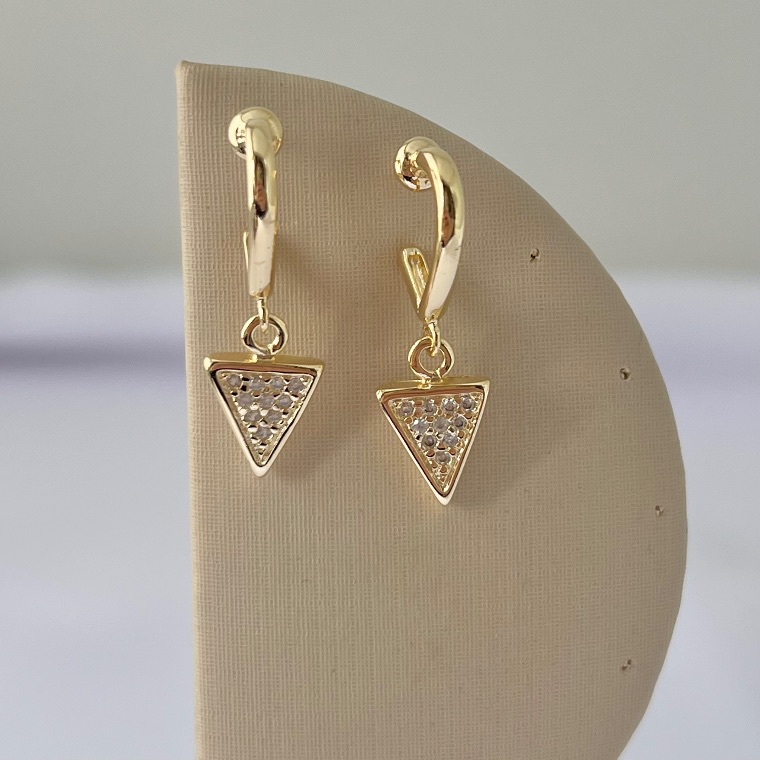 Argola com pingente triangulo cravejado em banho de ouro 18k