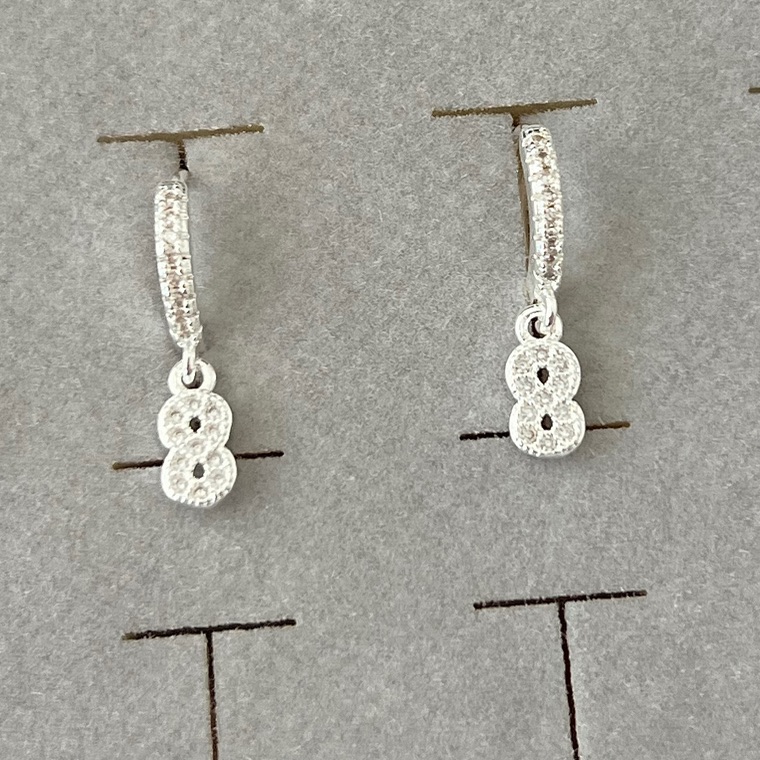 Argola cravejada pingente infinito em banho de prata silver