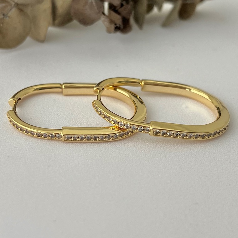 Argola inspiração tifanny cravejada grande em banho de ouro 18k