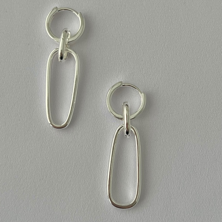 Argola lisa tradicional com pingente oval removível em banho de prata silver