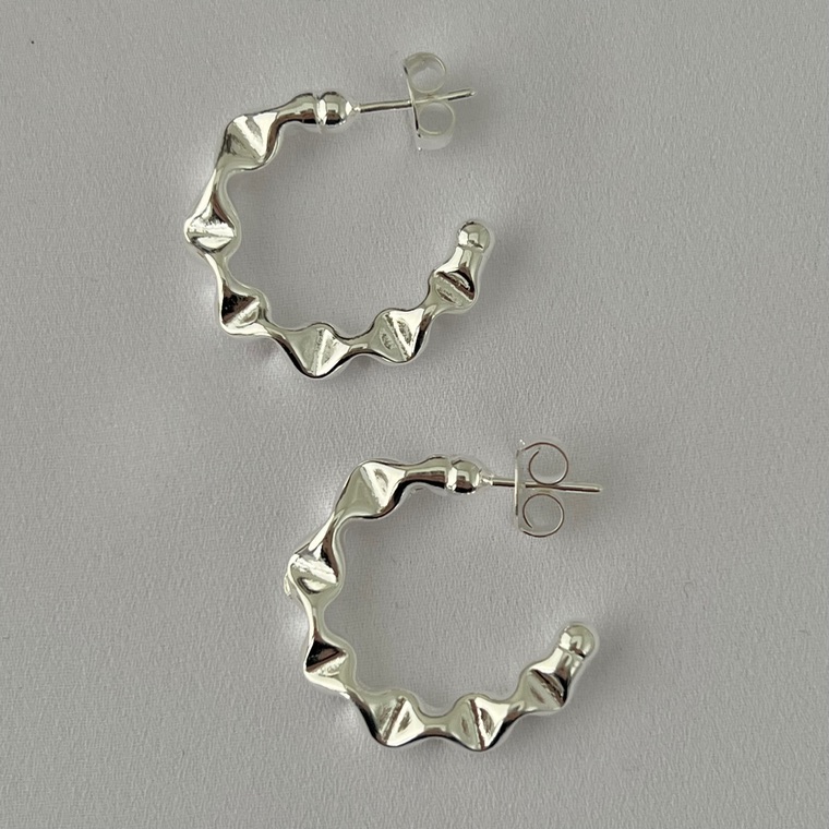 Argola meia lua ondulada G em banho de prata silver