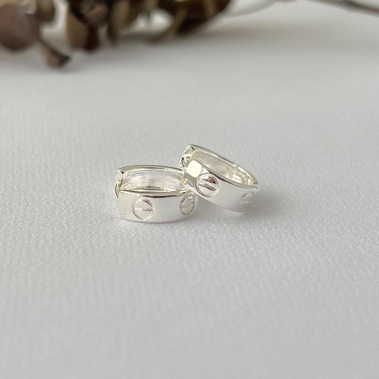 Brinco argola inspiração cartier M em banho de prata silver