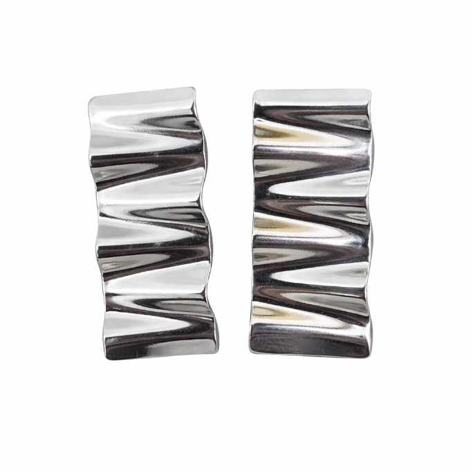 Brinco chapa ondulado em banho de prata silver