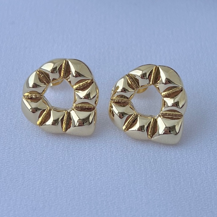 Brinco gota invertida texturizada em banho de ouro 18k