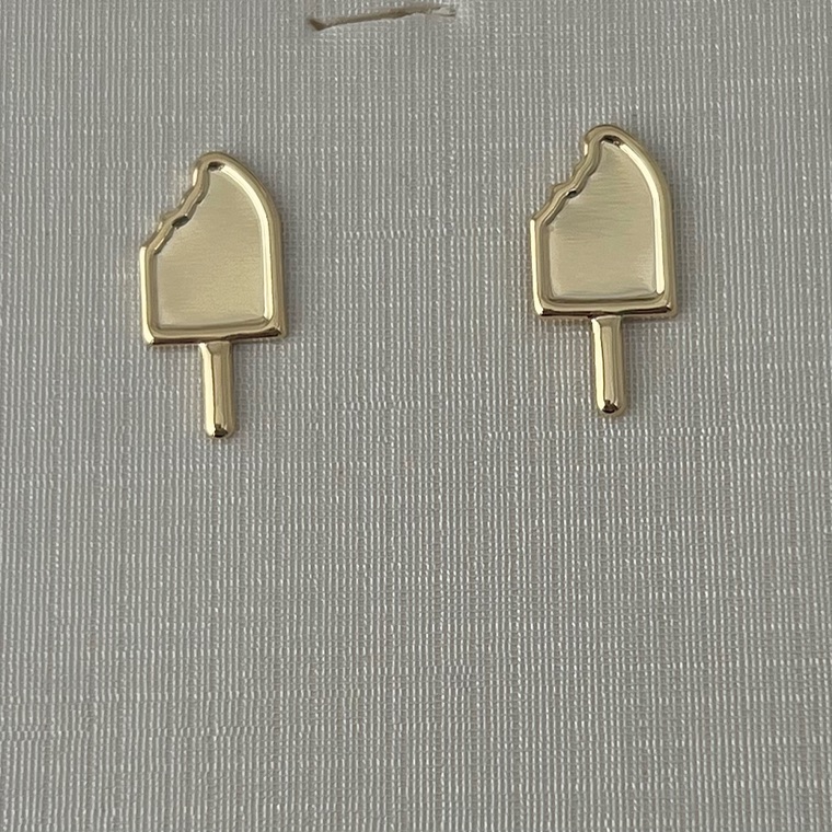 Brinco infantil de picolé liso em banho de ouro 18k