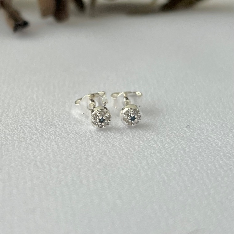 Brinco mini bolinha cravejada em banho de prata silver