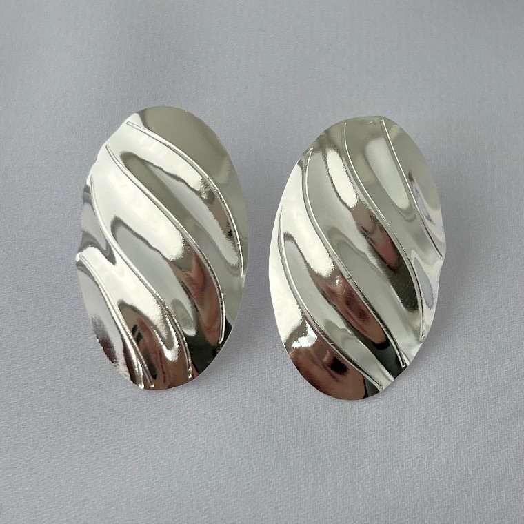 Brinco oval texturizado em banho de prata silver