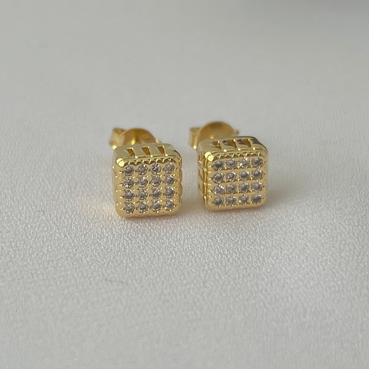 Brinco quadrado cravejado em banho de ouro 18k