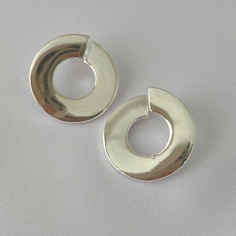 Brinco redondo vazado liso em banho de prata silver