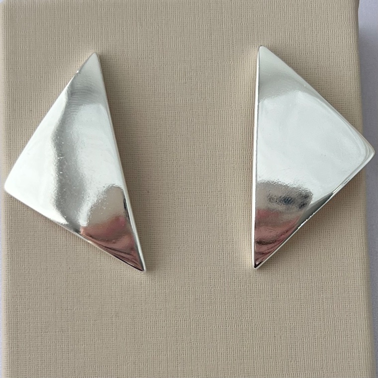 Brinco triângulo em chapa em banho de prata silver