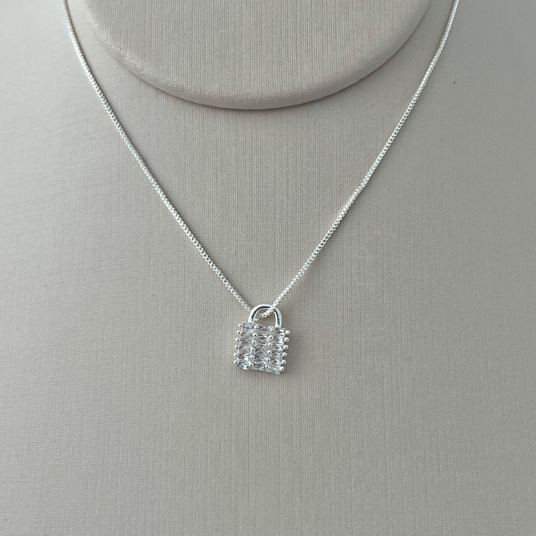 Colar chocker cadeado cravejado em banho de prata silver