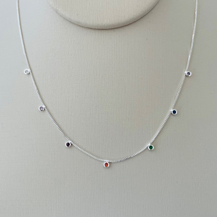 O colar com pontos de luz coloridos é uma semijoia delicada e cheia de charme, perfeita para quem busca brilho sutil com um toque de cor. Seus pequenos pontos de luz em zircônias coloridas conferem alegria e sofisticação, iluminando o visual com delicadeza.