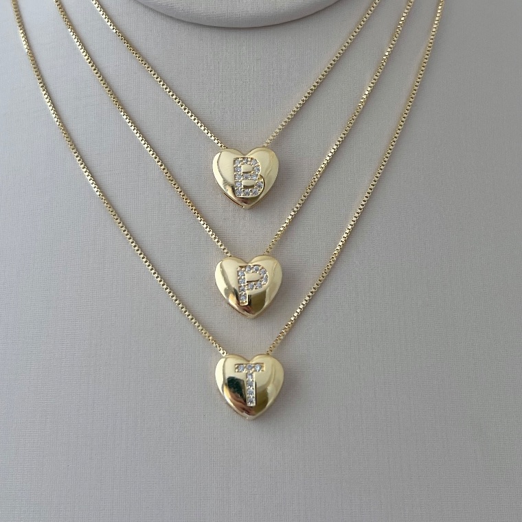Colar coração de letras variadas cravejadas em banho de ouro 18k