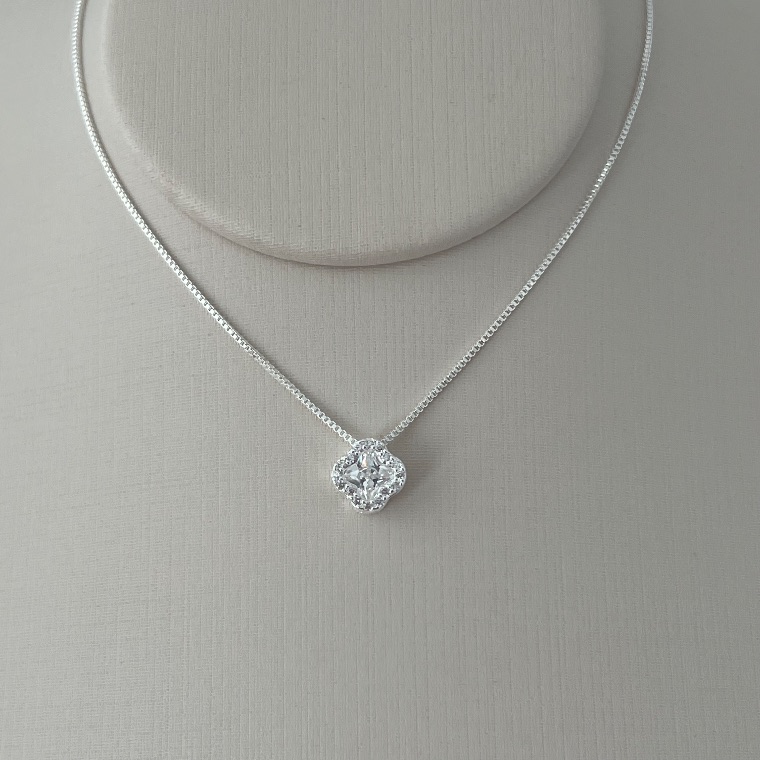 Colar flor em banho de prata silver