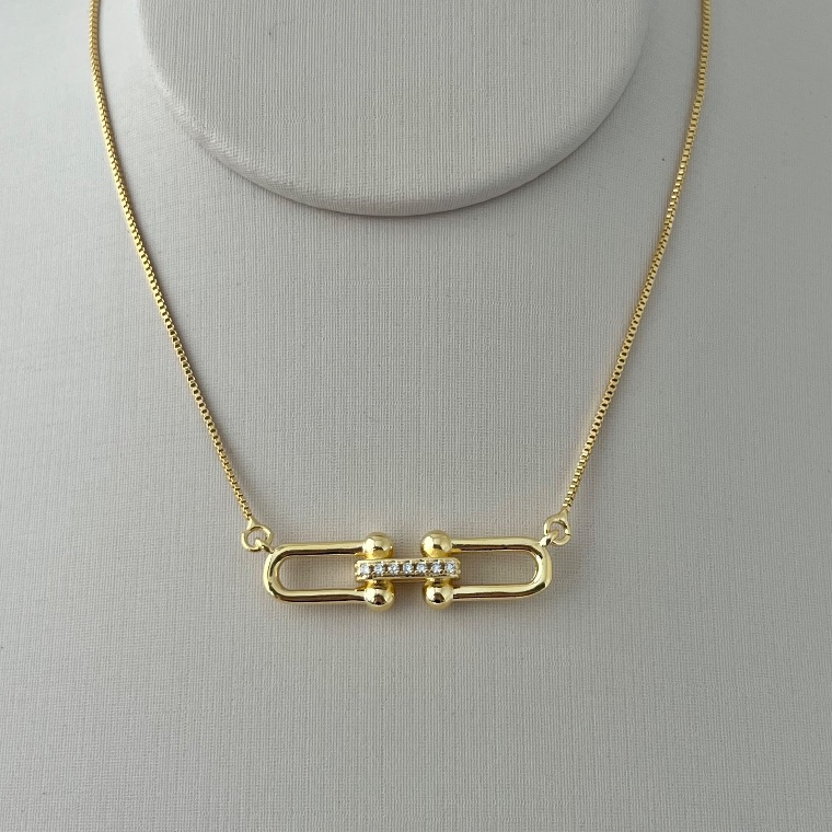 O colar inspiração Tiffany com pingentes engatados é uma semijoia delicada e atemporal, perfeita para quem busca elegância e estilo contemporâneo. Seus pingentes conectados em sequência criam um efeito harmonioso e moderno, destacando o colo com sofisticação e brilho sutil.