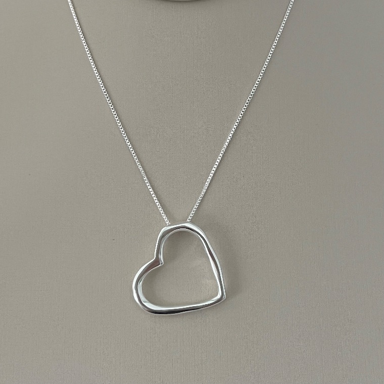 Colar pingente coração vazado em banho de prata silver