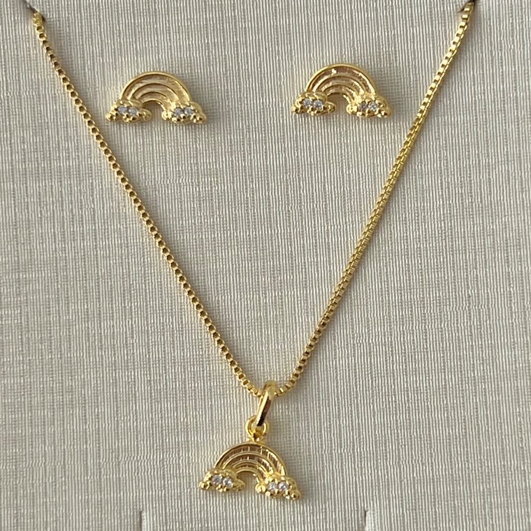 Pequeno, delicado e cheio de encanto! O conjunto infantil de arco-íris transforma qualquer look em diversão, trazendo um toque lúdico e alegre que combina perfeitamente com a imaginação e o estilo dos pequenos.