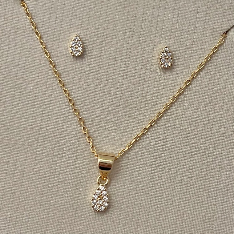 Pequeno no tamanho, grande no charme. O conjunto de mini gota cravejada combina delicadeza e brilho sutil.