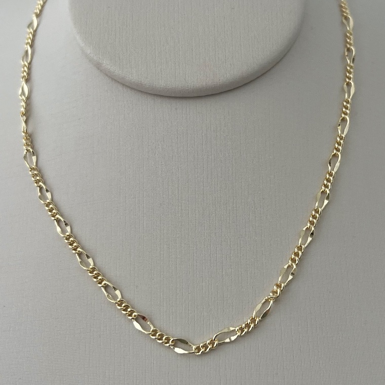 Clássica e sofisticada, a corrente de elos Fígaro combina elos alongados e curtos em um design icônico e atemporal. Seu acabamento polido garante brilho intenso e um visual elegante, ideal para ser usada sozinha ou com pingentes. Uma peça versátil, perfeita para quem busca estilo, presença e sofisticação no dia a dia.