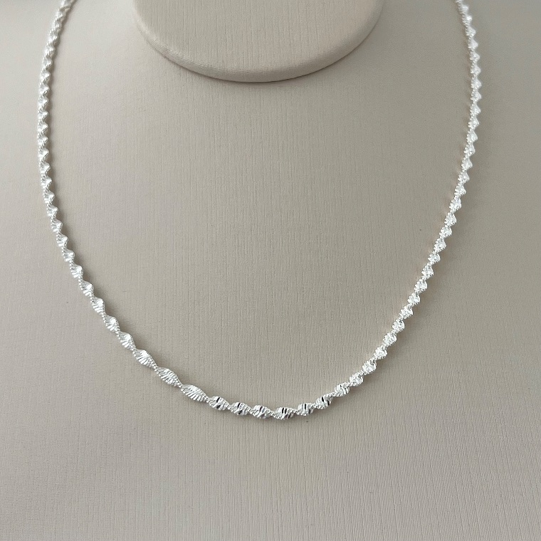 Clássica e sofisticada, a corrente em malha se destaca pelo design fluido e acabamento polido que garante brilho intenso e caimento impecável no colo. Uma peça versátil e atemporal, perfeita para uso diário ou composições mais elegantes.