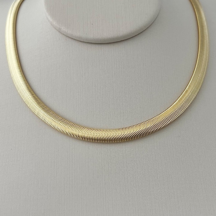 Imponente e elegante, a corrente Salamandra tamanho G se destaca pelo design robusto e acabamento polido de alto brilho, proporcionando presença marcante e visual moderno. Uma peça versátil e atemporal.