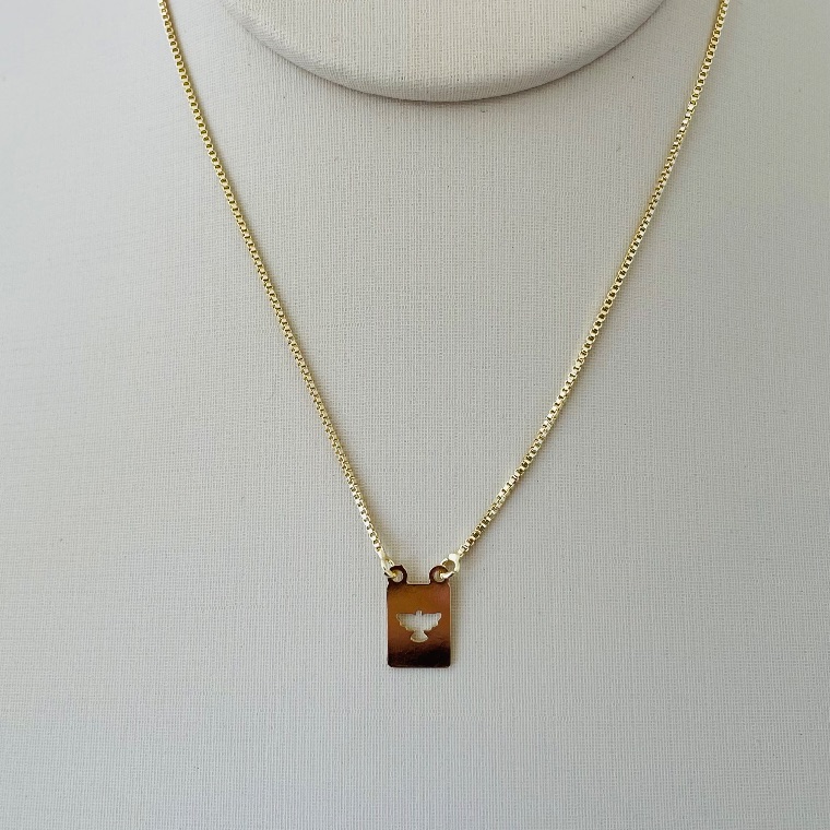O escapulário infantil Espírito Santo é uma semijoia delicada e cheia de significado, perfeita para proteger e acompanhar as pequenas com estilo e carinho. Seu pingente traz o símbolo do Espírito Santo, representando fé, proteção e bênçãos, com acabamento refinado e seguro para uso infantil.