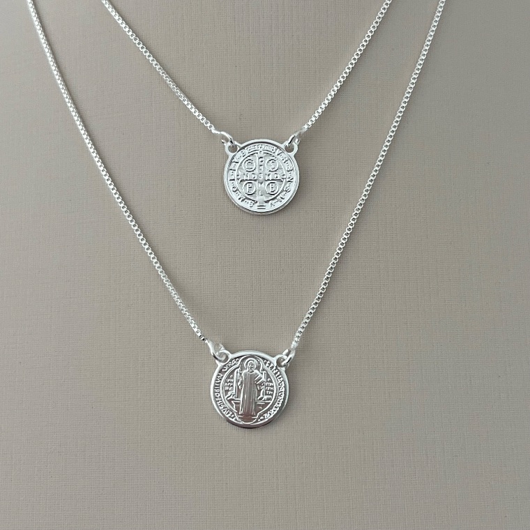 Escapulário São Bento em banho de prata silver