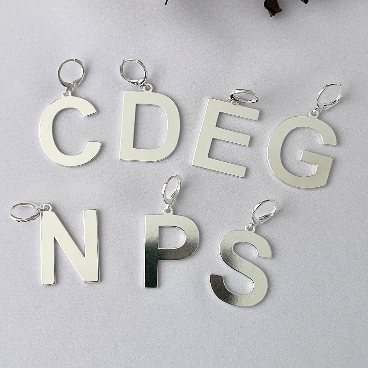 Pingente letras variadas em chapa grande em banho de prata silver