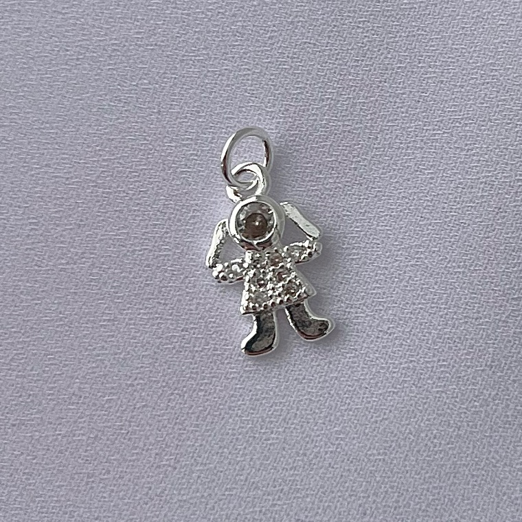 Pingente menina cravejado em banho de prata silver