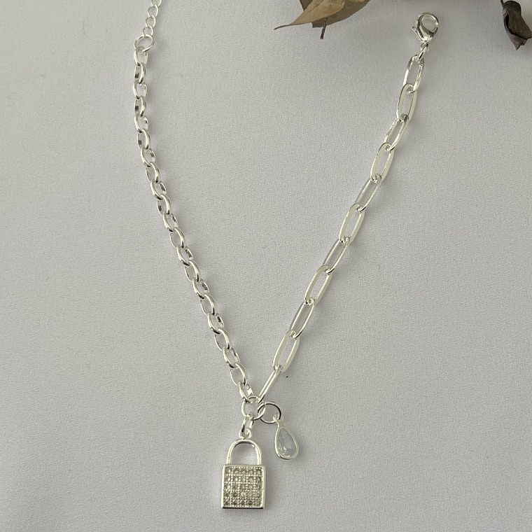 Elegante, delicada e cheia de estilo, a Pulseira com Cadeado Cravejado e Ponto de Luz em Gota é perfeita para quem busca um acessório moderno e marcante. O cadeado cravejado adiciona brilho e sofisticação, enquanto o ponto de luz em formato de gota traz delicadeza e charme ao visual.