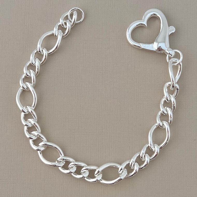 Pulseira de elos grumet intercalado fecho coração G em banho de banho de prata silver