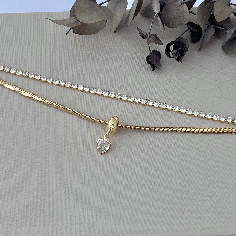 A Pulseira Dupla Riviera e Salamandra é sofisticada e moderna, unindo brilho e estilo em uma única peça. Uma das correntes traz o clássico design riviera com pedras alinhadas que oferecem luminosidade contínua, enquanto a corrente salamandra adiciona movimento e textura ao conjunto.