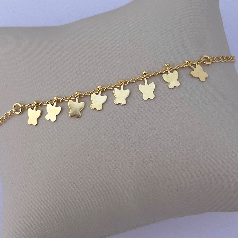 A Pulseira Infantil com Borboletas Lisas é delicada, encantadora e perfeita para trazer leveza ao visual das pequenas. Com borboletinhas lisas distribuídas ao longo da corrente, a peça transmite suavidade e um toque lúdico na medida certa.