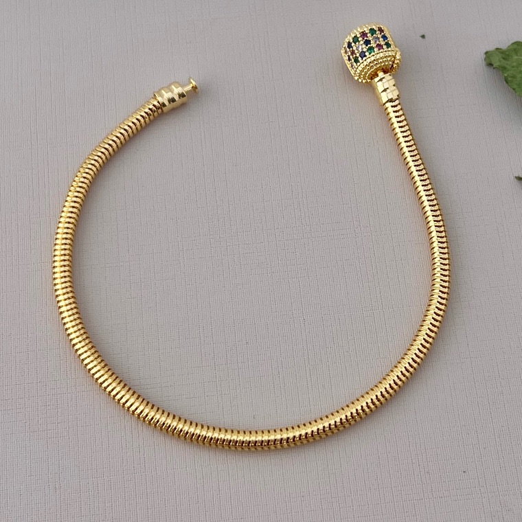 Pulseira inspiração vivara fecho cravejado em banho de banho de ouro 18k