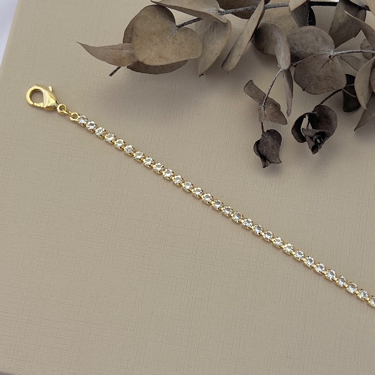 A Pulseira Riviera é a escolha perfeita para quem busca sofisticação e delicadeza em cada detalhe. Com seu design clássico e atemporal, ela é cravejada com pedras de alta qualidade que refletem a luz de forma única, garantindo brilho intenso em qualquer ocasião.
