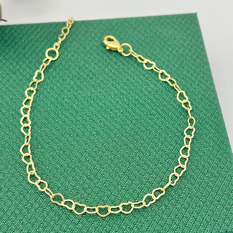 Tornozeleira em banho de ouro 18k de elos vazados em formato de corações