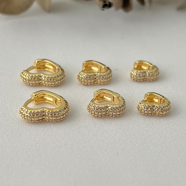 Trio de argolas corações cravejados robusta em banho de ouro 18k