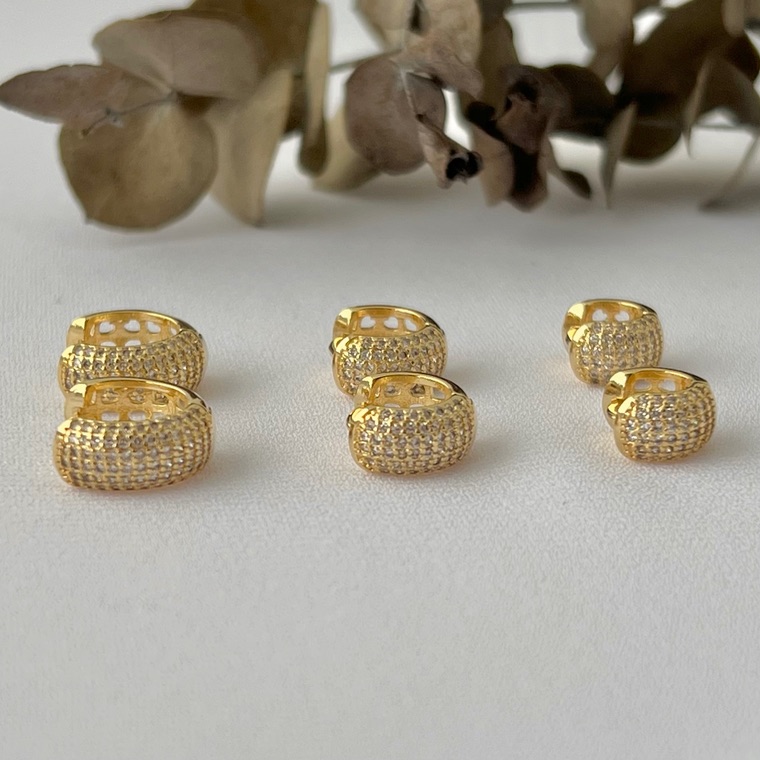Trio de argolas cravejadas abaloadas em banho de ouro 18k