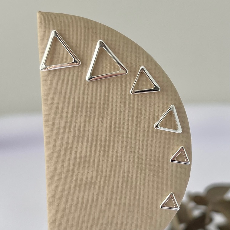 Trio de brincos formato triângulos vazados é um conjunto moderno e versátil, perfeito para quem gosta de acessórios geométricos e cheios de estilo. Com design em triângulos vazados e três tamanhos diferentes, permite combinações criativas para múltiplos furos ou para variar o visual. Leves e sofisticados, esses brincos são ideais para o dia a dia ou para ocasiões especiais, sendo semijoias atemporais que unem elegância, modernidade e charme em cada detalhe.